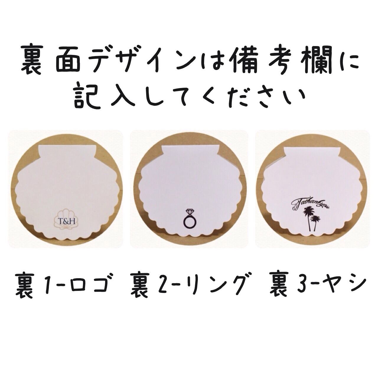①裏面デザインを備考欄にお書きください