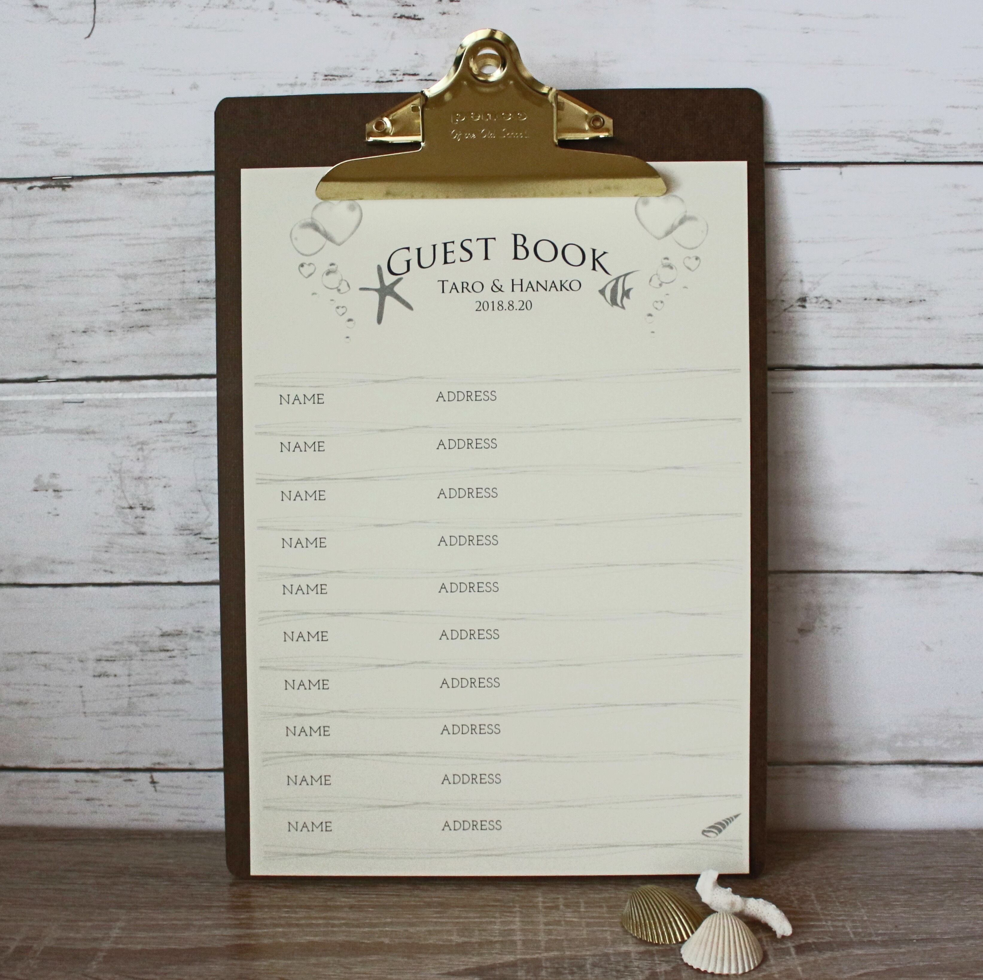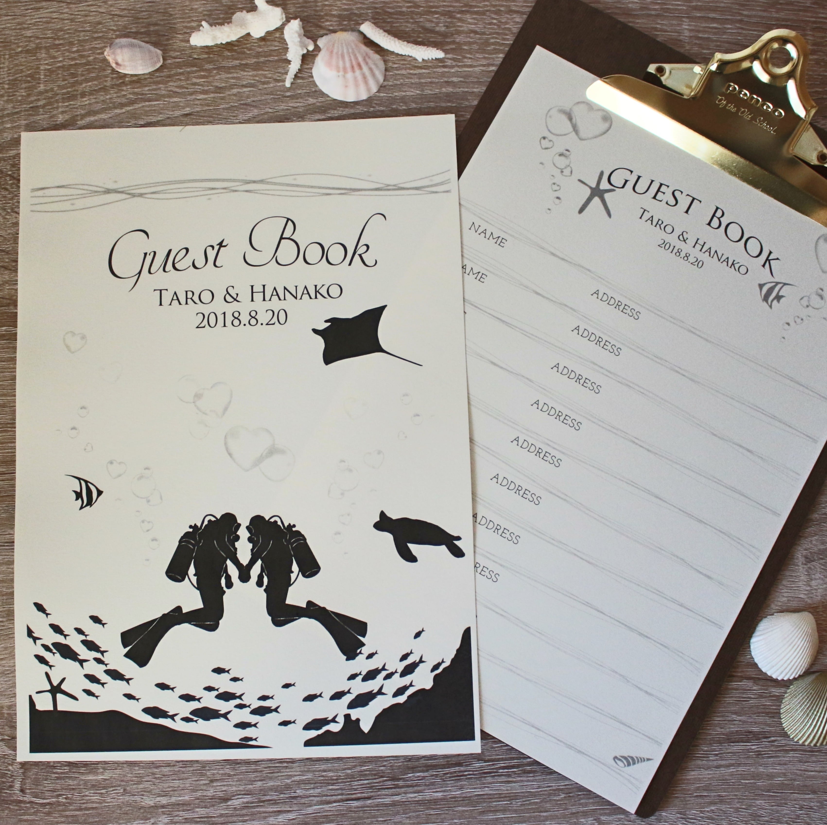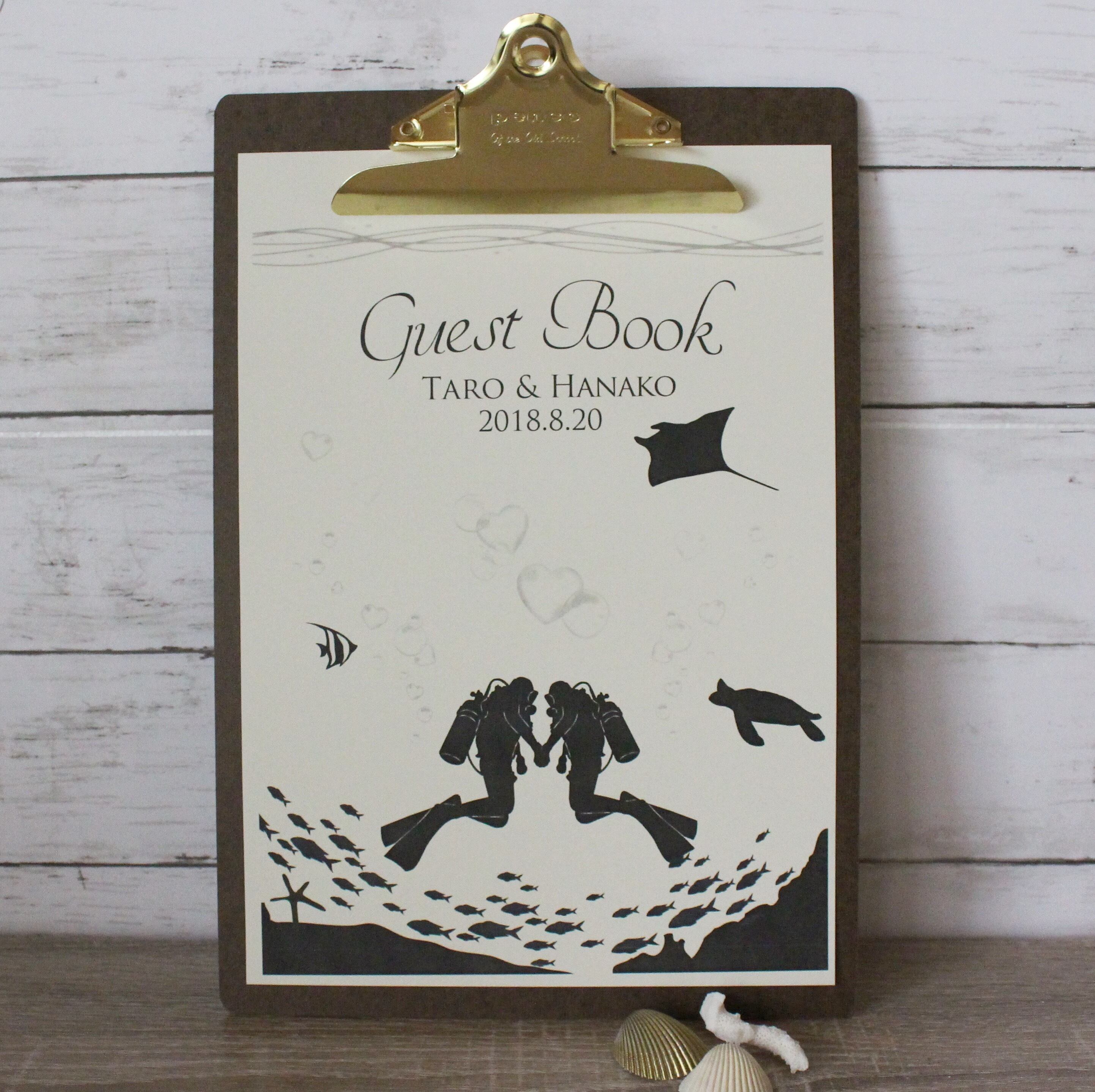 新郎新婦様のお名前と挙式日をお入れしたセミオーダーのゲストブックです